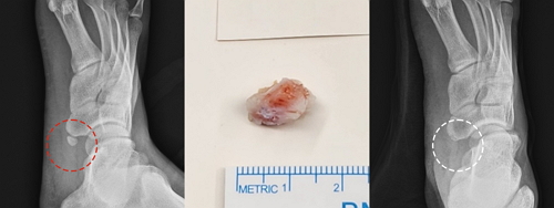 »çÁø ¼³¸í=ºÎÁÖ»ó°ñ Á¦°Å ¼ö¼ú Àü X-RAY(ÁÂ), Á¦°ÅµÈ ºÎÁÖ»ó°ñ(Áß°£), ºÎÁÖ»ó°ñ Á¦°Å ¼ö¼ú ÈÄ X-RAY(¿ì)