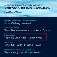 ³úÁúȯ ¿µ»ó ÀΰøÁö´É(AI) ¼Ö·ç¼Ç Àü¹®±â¾÷ ´º·ÎÇÍÀº ÀÚ»ç ¿¬±¸º»ºÎ ¼Ò¼Ó 3ÀÎ ÆÀ(Team NEUROPHET)ÀÌ ¾ËÃ÷ÇÏÀ̸Ӻ´ µ¥ÀÌÅÍ ÀÌ´Ï¼ÅÆ¼ºê(Alzheimer¡¯s Disease Data Initiative: ÀÌÇÏ ADDI)°¡ ÁÖÃÖÇÑ 'NTK(NeuroToolKit..