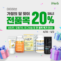 ¾ÆÀÌÇãºê(iHerb)°¡ °¡Á¤ÀÇ ´ÞÀ» ¸Â¾Æ Àü ǰ¸ñ Ưº° ÇÒÀÎÀüÀ» ÁøÇàÇÑ´Ù°í 25ÀÏ ¹àÇû´Ù.°¡Á¤ÀÇ ´Þ ±â³ä Àü ǰ¸ñ ÇÒÀÎÀüÀº 25ÀϺÎÅÍ ¿À´Â 5¿ù 2ÀÏ »õº® 2½Ã±îÁö 7Àϰ£ ÁøÇàµÈ´Ù. 6¸¸¿ø ÀÌ»ó ÁÖ¹®¿¡ ´ëÇØ Àü Á¦Ç° 20% ÇÒ..
