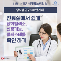 11¿ù 14ÀÏÀº ¼¼°è´ç´¢º´ÀÇ ³¯´ç´¢º´ Àα¸ 501¸¸ ½Ã´ë, Áø·á½Ç¿¡¼ ½±°Ô ´çÈÇ÷»ö¼Ò, ½ÅÀå±â´É, ÄÝ·¹½ºÅ×·Ñ È®ÀÎÇϱⰡÆÄ¸£°Ô ³ô¾ÆÁö´Â ´ç´¢º´ À¯º´·ü´ç´¢º´ ȯÀÚÀÇ ¼ö´Â Àü ¼¼°èÀûÀ¸·Î ºü¸£°Ô ´Ã¾î³ª°í ÀÖ½À´Ï´Ù.»ýȰ..