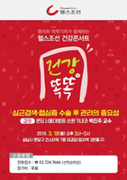 ¸íÀÇ¿Í ÀÇÇÐÀü¹®±âÀÚ°¡ ÇÔ²² ÇÏ´Â ÇコÁ¶¼± °Ç°ÄܼƮ '°Ç°¶È¶È' 18¹ø ° ÇÁ·Î±×·¥ÀÌ 18ÀÏ(¿ù) ¿ÀÈÄ 3½Ã, ¼º³²½Ã ºÐ´ç±¸ Ų½ºÅ¸¿ö 7Ãþ ´ë°´ç(Á¤ÀÚ¿ª 3¹øÃⱸ)¿¡¼ ¿¸°´Ù. ÁÖÁ¦´Â '½É±Ù°æ»ö¡¤Çù½ÉÁõ ¼ö¼ú ÈÄ °ü¸®..