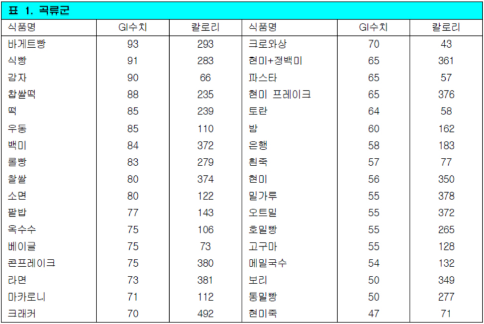 점수가 낮을수록 혈당을 천천히 올려 혈당 조절에 효과적이다.