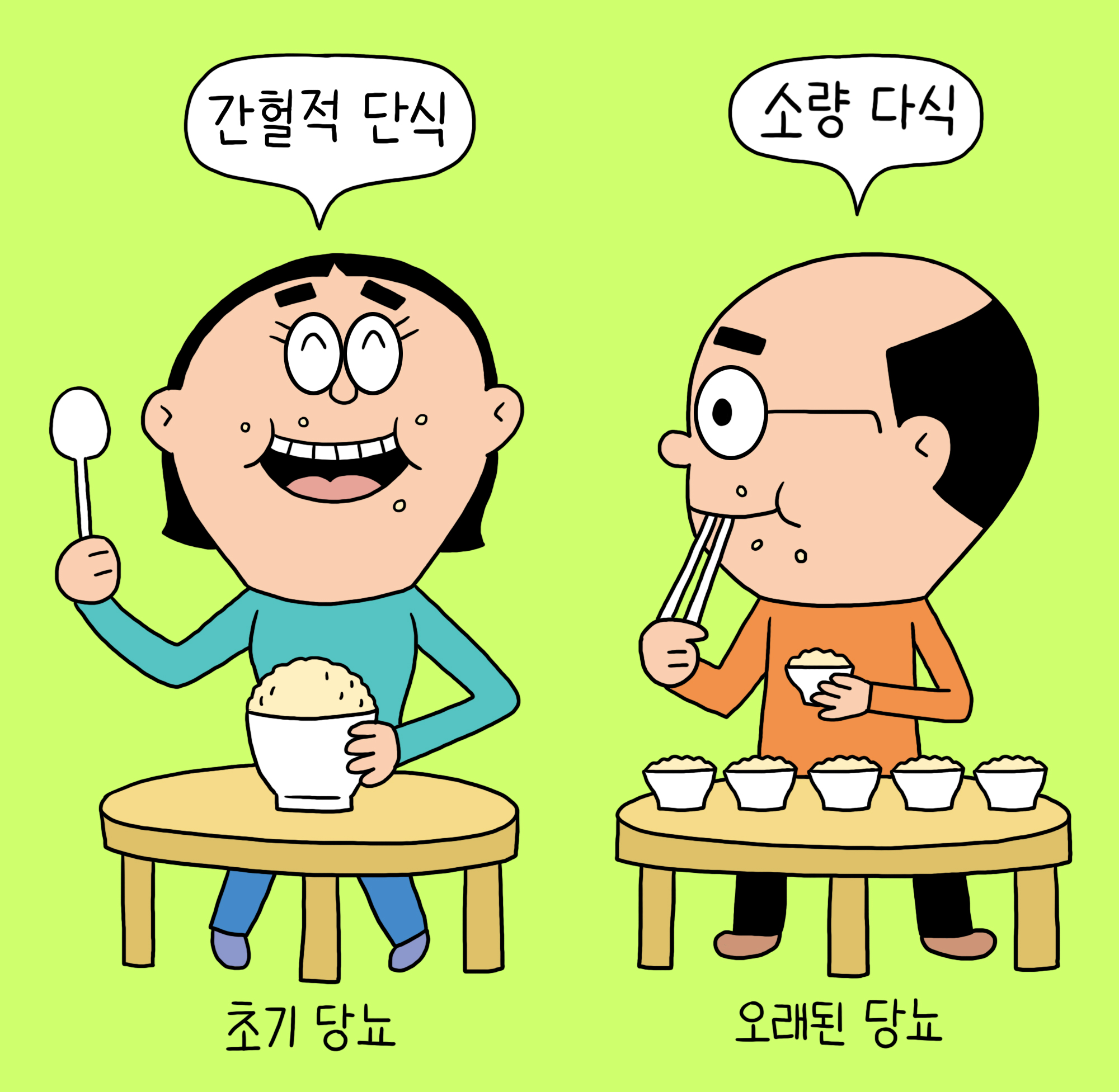 ‘소량 다식’과 ‘간헐적 단식’, 정답이 있을까요? ‘치료 시기’에 따라 정답은 달라집니다. 무슨 말인지……. 당뇨병 진단을 받은 지 오래됐고, 약물치료를 동반하고 계신 분이라면 ‘소량 다식’ 식단이 맞습니다.