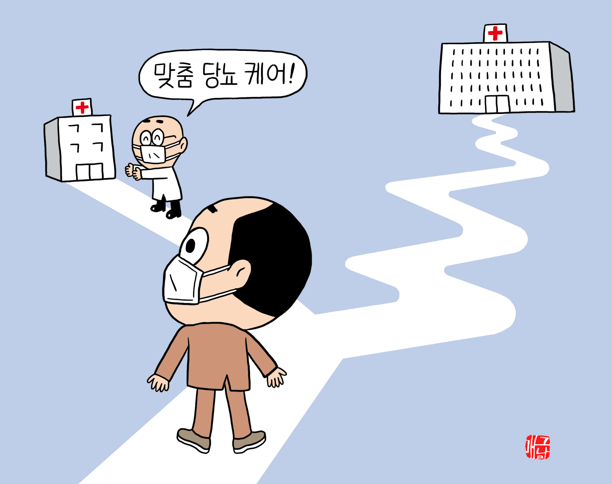 일차 의료 만성질환 관리 시범사업에 등록하면 합병증이 발생하지 않게 하는 혈당 관리법을 교육받을 수 있고, 식사와 운동 등 당뇨 환자에게 필요한 생활요법을 체계적으로 배울 수 있습니다. 첫 교육은 30분 동안 진행되며, 문진(가족력, 병력, 약 복용력, 생활습관 등 확인)과 검사(당화혈색소, 혈당, 콜레스테롤, 체중 등 확인)를 통해 의료진이 환자에게 맞는 목표 혈당치를 설정해줍니다. 추후에는 일정을 조율해 1년 안에 8번의 교육을 더 받을 수 있습니다. 이때는 혈당을 모니터링하고, 생활습관을 점검하고, 약물 순응도를 살피는 작업이 함께 이뤄집니다. 평소 혈당을 관리하면서 궁금했던 사항을 물어보기에도 좋은 기회입니다.