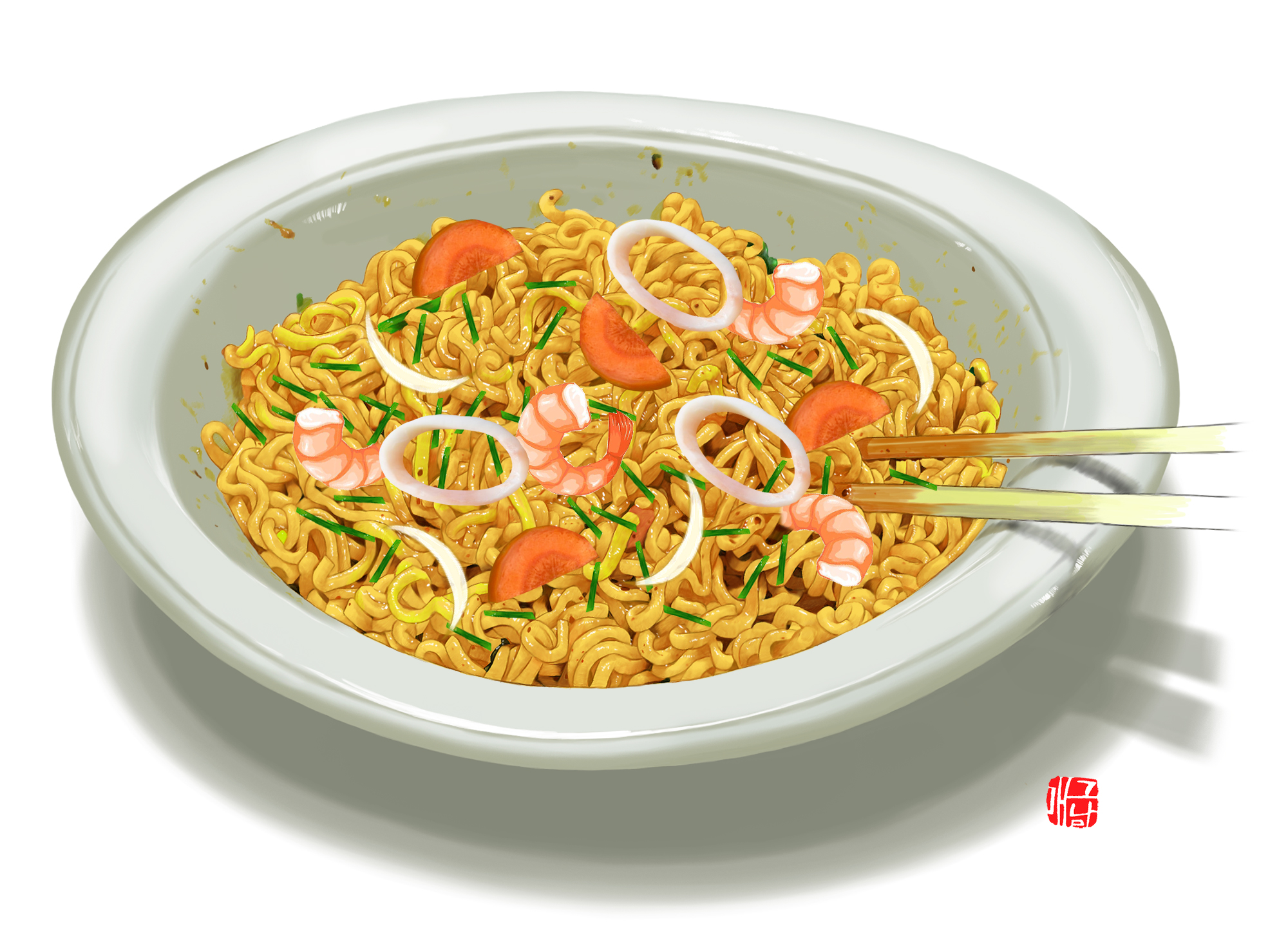 1. 오징어는 7cm*0.7cm 길이로 먹기 좋게 썬다. 2. 양배추와 양파는 한입 크기로 썰고, 당근은 반달썰기 한다. 3. 부추는 5cm 길이로 자른다. 4. 끓는 물에 라면을 삶아 찬물에 헹궈 체에 건져 둔다. 5. 프라이팬에 식용유를 두르고 새우와 오징어를 넣고 볶다가 양배추, 양파, 당근을 넣고 소금, 후추로 간을 한다. 6. 채소가 익으면 삶아 둔 라면을 넣고 볶다가 간장, 맛술, 두반장을 넣고 간을 한다. 7. 부추를 넣어 살짝 볶은 후 그릇에 담아낸다. Tip. 오징어, 새우살은 냉동 제품이나 해물 모둠으로 대체할 수 있다. |