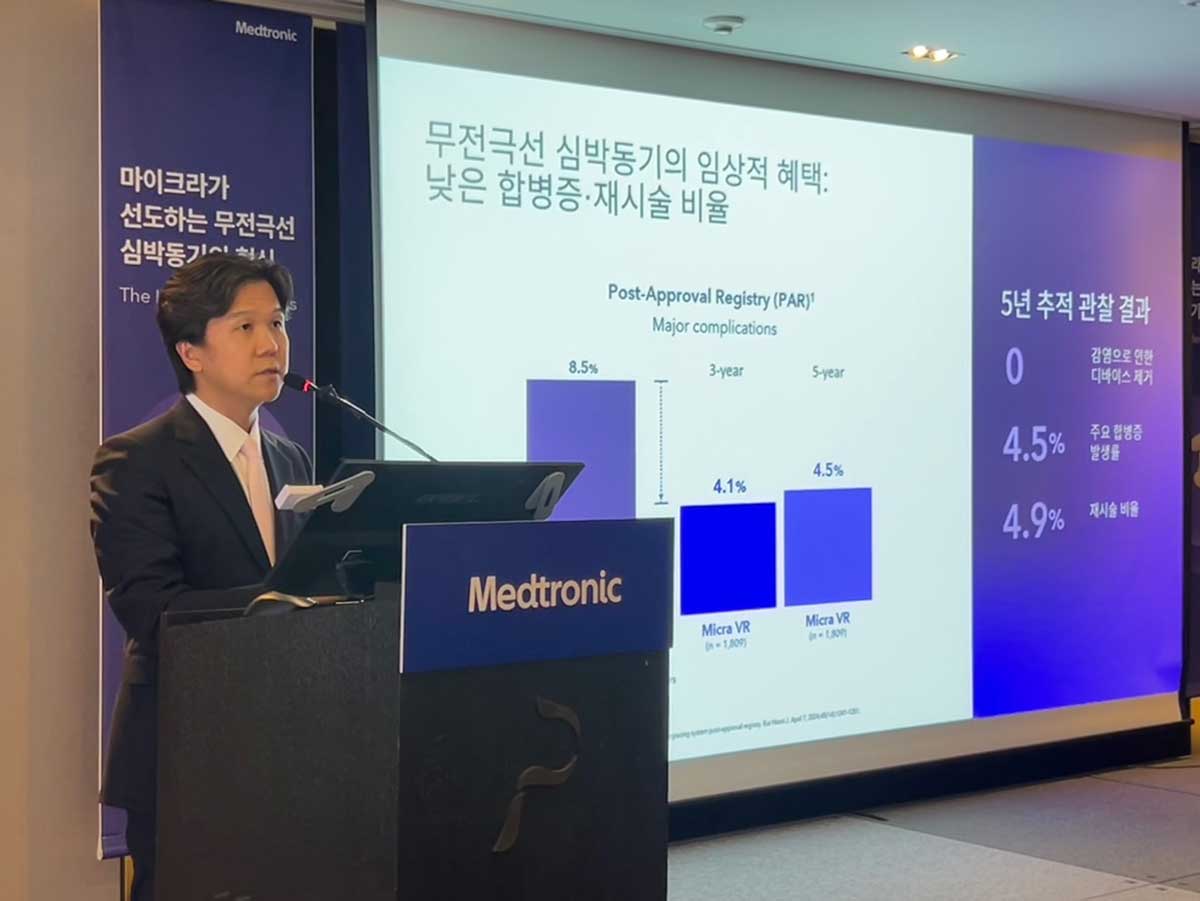 세브란스 심장혈관병원 심장내과 유희태 교수는 2일 열린 메드트로닉 ‘마이크라 2’ 출시 기념 기자간담회에서 무전극선 심박동기가 지닌 임상적 가치와 향후 발전 방향을 공유했다. 유 교수는 무전극선 심박동기를 “기존 유선 심박동기로 치료가 불가능했던 환자들에게 치료 가능성을 열어준 옵션”이라고 정의했다.