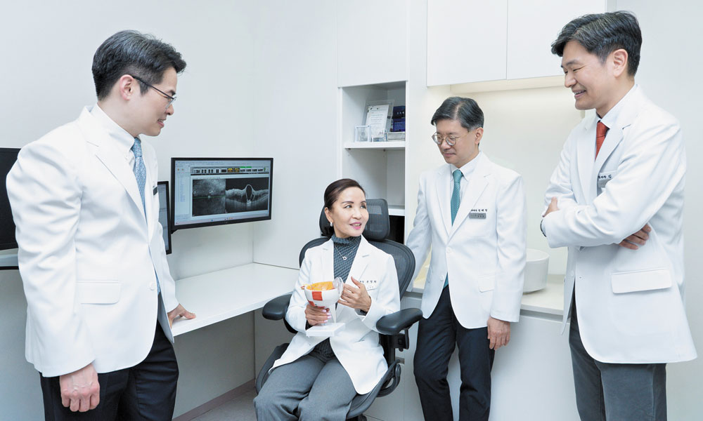 혜안서울안과의원은 시력교정과 백내장, 고난도 망막 질환, 안종합검진까지 세부 분야별 협진 체계를 구축해 환자에게 맞춤형 정밀 진료를 시행하고 있다. (왼쪽부터 이주용, 윤영희, 정태영, 김명준 원장) /정하림 헬스조선 객원 기자